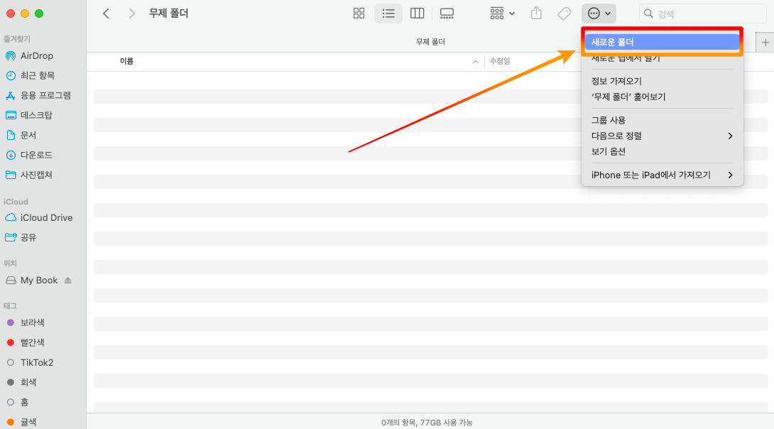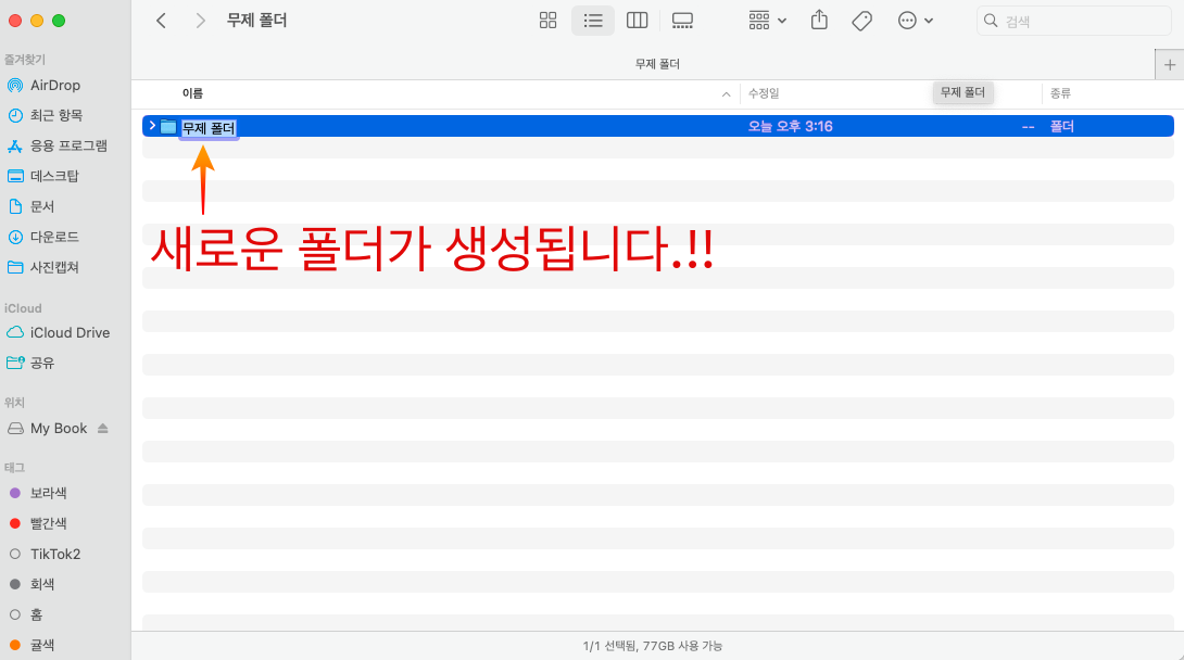 맥 새폴더 만들기 마우스로