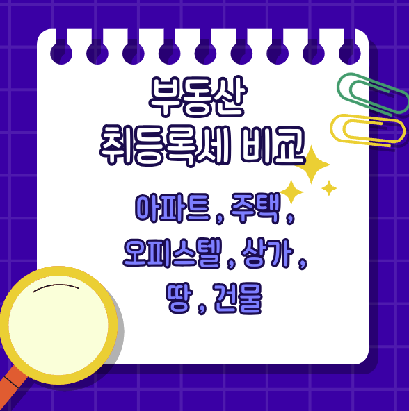 부동산 취등록세 비교: 아파트 주택 오피스텔 땅 상가 건물