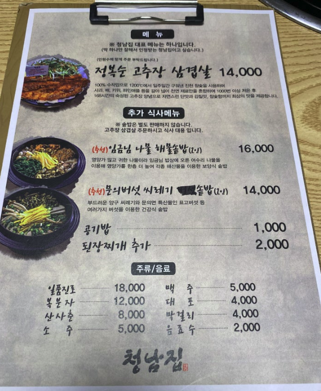 '청남집' 가게에서 맛있는 식사 하시고 즐거운 하루 보내시길 바라겠습니다.