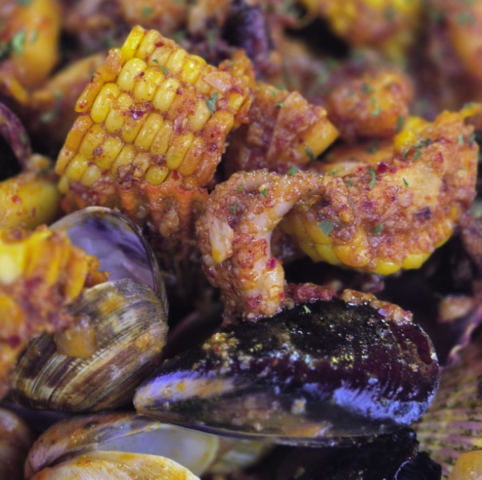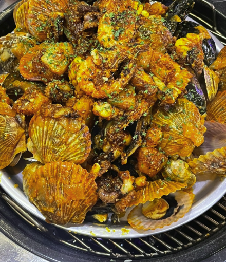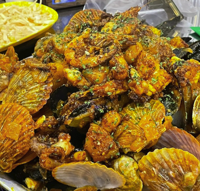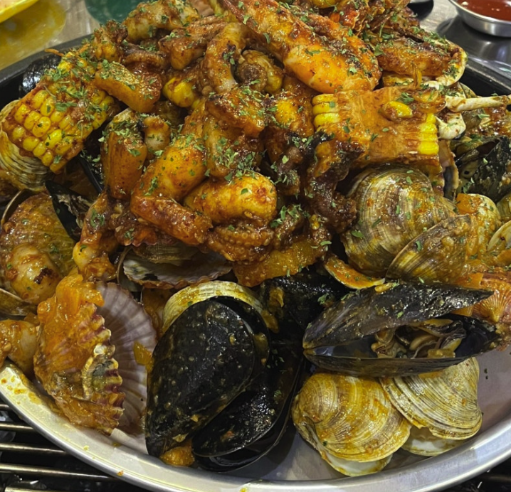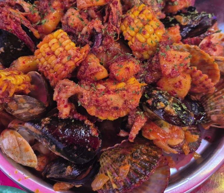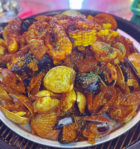 매콤하고 불향 가득한 양념에 조개, 해산물이 가득!