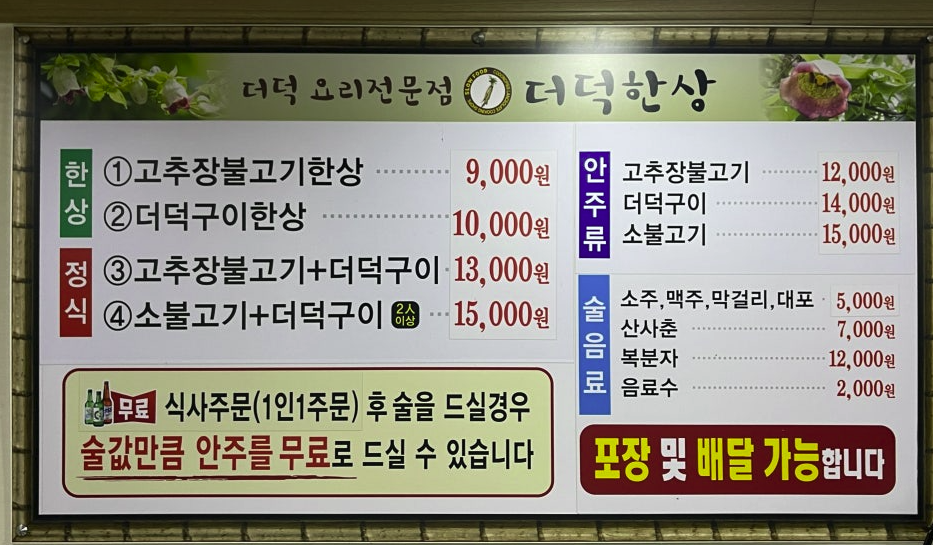 - 고추장불고기+더덕구이 정식 : 13,000원