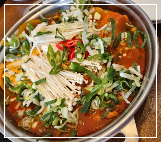 - 묵은지: 새콤하면서도 깊은 발효맛이 국물에 녹아들어 진한 풍미 완성.