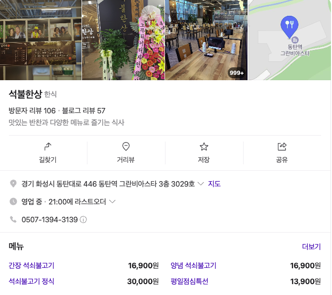 오늘N 석쇠불고기 한상 맛집 화성 동탄 석불한상 리베라CC 동탄역