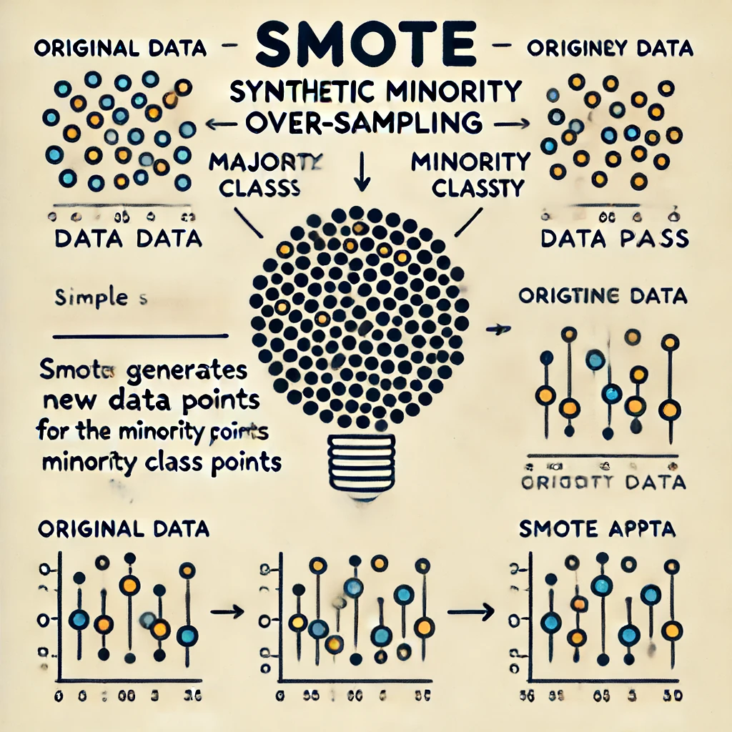 SMOTE는 소수 클래스의 샘플 사이에 새로운 합성 샘플을 생성하는 방법입니다.