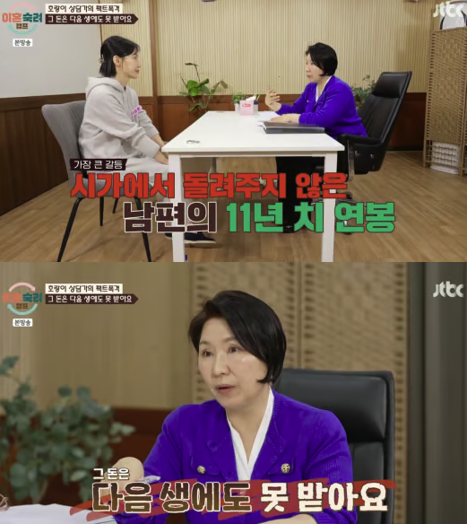 11년 동안 받았던 연봉을 모두 부모님께 맡겼지만, 돌려받지 못해 생긴 갈등이 부부 관계의 핵심 문제였습니다.