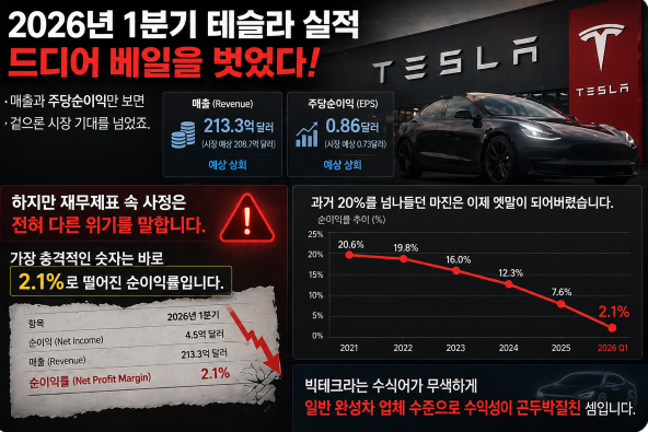 2026년 1분기 테슬라 실적이 드디어 베일을 벗었습니다.