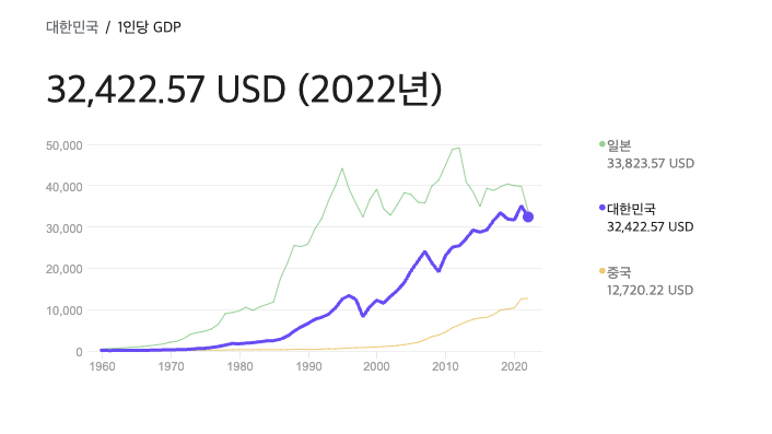 2022년 대한민국 1인당 - GDP 32,422.57 달러