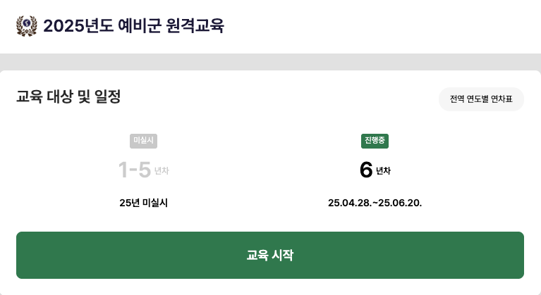대상: 2025년 기준 예비군 6년차 (지원/비상근 제외)
